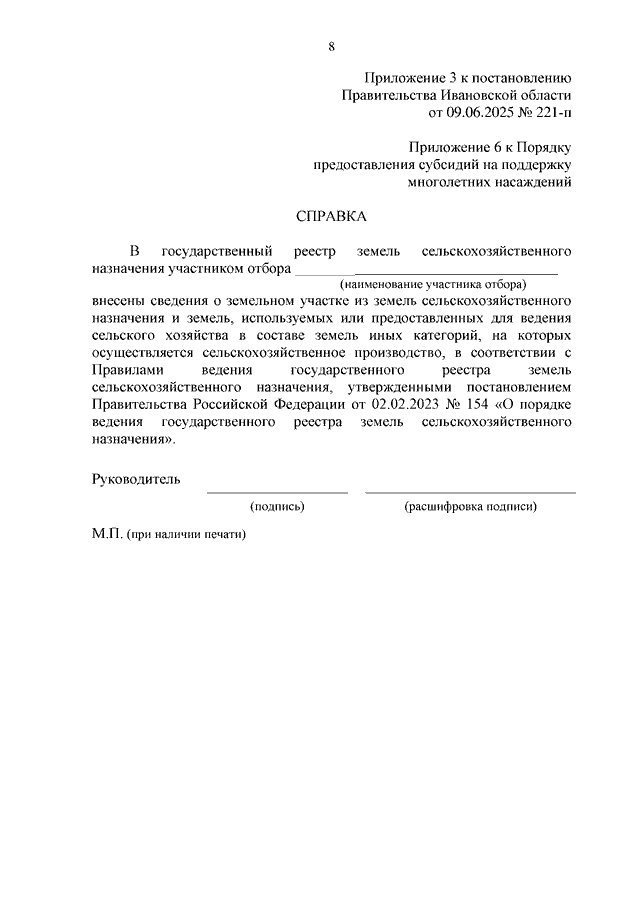 Постановление Правительства Ивановской области от 09.06.2025 N 221-п "О внесении изменений в постановления Правительства Ивановской области от 18.04.2024 N 161-п "Об утверждении Порядка предоставления субсидий на поддержку элитного семеноводства" и от 14.05.2024 N 210-п "Об утверждении Порядка предоставления субсидий на поддержку многолетних насаждений"