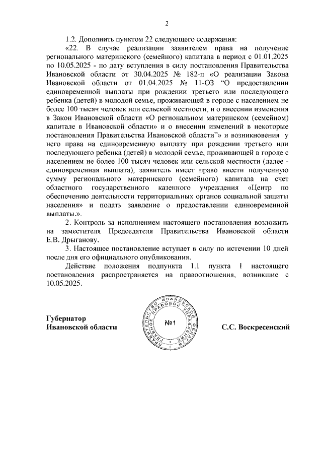Постановление Правительства Ивановской области от 09.06.2025 N 223-п "О внесении изменений в постановление Правительства Ивановской области от 15.11.2023 N 554-п "О реализации Закона Ивановской области от 02.10.2023 N 41-ОЗ "О региональном материнском (семейном) капитале в Ивановской области" и внесении изменений в некоторые постановления Правительства Ивановской области"