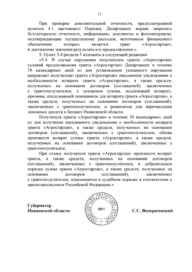 Постановление Правительства Ивановской области от 11.06.2025 N 228-п "О внесении изменений в постановление Правительства Ивановской области от 01.04.2024 N 119-п "Об утверждении Порядка предоставления грантов "Агростартап" крестьянским (фермерским) хозяйствам или индивидуальным предпринимателям, основным видом деятельности которых является производство и (или) переработка сельскохозяйственной продукции, на реализацию проектов создания и (или) развития хозяйства"
