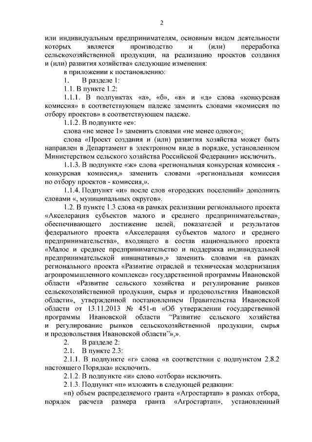 Постановление Правительства Ивановской области от 11.06.2025 N 228-п "О внесении изменений в постановление Правительства Ивановской области от 01.04.2024 N 119-п "Об утверждении Порядка предоставления грантов "Агростартап" крестьянским (фермерским) хозяйствам или индивидуальным предпринимателям, основным видом деятельности которых является производство и (или) переработка сельскохозяйственной продукции, на реализацию проектов создания и (или) развития хозяйства"