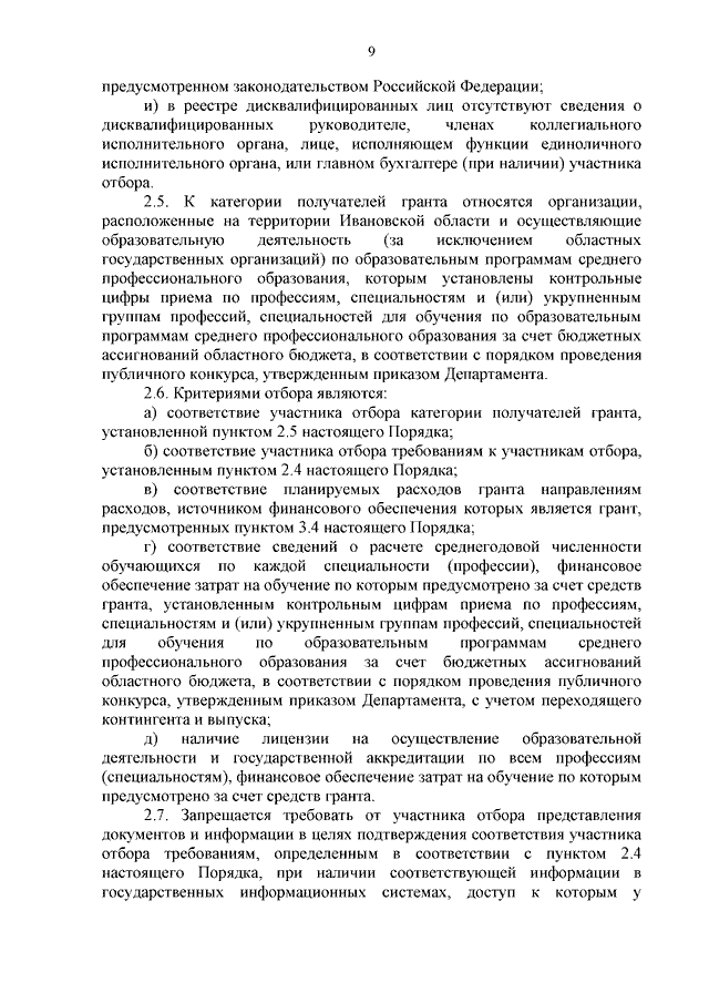 Постановление Правительства Ивановской области от 11.06.2025 N 229-п "О предоставлении грантов в форме субсидий организациям, осуществляющим образовательную деятельность по образовательным программам среднего профессионального образования, на финансовое обеспечение обучения граждан Российской Федерации по имеющим государственную аккредитацию образовательным программам среднего профессионального образования" (вместе с "Порядком предоставления грантов в форме субсидий организациям, осуществляющим образовательную деятельность по образовательным программам среднего профессионального образования, на финансовое обеспечение обучения граждан Российской Федерации по имеющим государственную аккредитацию образовательным программам среднего профессионального образования")