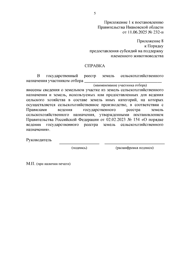 Постановление Правительства Ивановской области от 11.06.2025 N 232-п "О внесении изменений в постановления Правительства Ивановской области от 22.02.2024 N 56-п "Об утверждении Порядка предоставления субсидий на поддержку племенного животноводства" и от 22.02.2024 N 57-п "Об утверждении Порядка предоставления субсидий на поддержку производства молока"