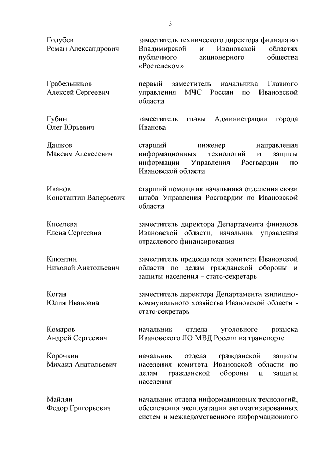 Распоряжение Правительства Ивановской области от 17.06.2025 N 77-рп "О внесении изменений в распоряжение Правительства Ивановской области от 05.08.2015 N 177-рп "О создании рабочей группы по вопросу построения (развития) и внедрения аппаратно-программного комплекса "Безопасный город" на территории муниципальных образований Ивановской области"