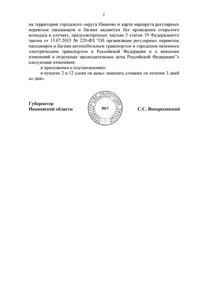 Постановление Правительства Ивановской области от 17.06.2025 N 237-п "О внесении изменений в постановление Правительства Ивановской области от 13.08.2020 N 377-п "О Порядке определения юридического лица, индивидуального предпринимателя, участника договора простого товарищества, которым свидетельства об осуществлении перевозок по межмуниципальному маршруту регулярных перевозок пассажиров и багажа автомобильным транспортом, по муниципальному маршруту регулярных перевозок пассажиров и багажа автомобильным транспортом на территории городского округа Иваново и карта маршрута регулярных перевозок пассажиров и багажа выдаются без проведения открытого конкурса в случаях, предусмотренных частью 3 статьи 19 Федерального закона от 13.07.2015 N 220-ФЗ "Об организации регулярных перевозок пассажиров и багажа автомобильным транспортом и городским наземным электрическим транспортом в Российской Федерации и о внесении изменений в отдельные законодательные акты Российской Федерации"