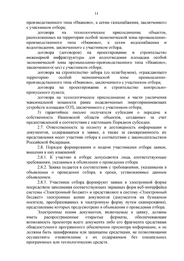 Постановление Правительства Ивановской области от 08.08.2025 N 316-п "О внесении изменений в некоторые постановления Правительства Ивановской области" (вместе с "Порядком предоставления из областного бюджета субсидий юридическим лицам на технологическое присоединение объектов, расположенных на территории особой экономической зоны промышленно-производственного типа "Иваново", к электрическим сетям, сетям газоснабжения, сетям водоснабжения и водоотведения, проектирование и строительство инженерной инфраструктуры для водоотведения площадки особой экономической зоны промышленно-производственного типа "Иваново", создание объектов иной инфраструктуры (строительство забора (со шлагбаумом), ограждающего территорию особой экономической зоны промышленно-производственного типа "Иваново"), проектирование и строительство контрольно-пропускного пункта, технологическое присоединение в части увеличения максимальной мощности ранее подключенных энергопринимающих устройств площадки ОЭЗ в рамках реализации инфраструктурных проектов, источником финансового обеспечения расходов на реализацию которых являются бюджетные кредиты из федерального бюджета бюджетам субъектов Российской Федерации на финансовое обеспечение реализации инфраструктурных проектов", "Порядком предоставления из областного бюджета субсидий некоммерческим организациям, не являющимся государственными (муниципальными) учреждениями, на технологическое присоединение создаваемого кампуса на территории города Иваново, ограниченной улицей Зверева, переулком Слесарным, улицами Громобоя, Жиделева, Демидова, проспектом Ленина, площадью Пушкина, улицей Жарова, к сетям водоснабжения, водоотведения, теплоснабжения, электроснабжения в рамках реализации инфраструктурных проектов, источником финансового обеспечения расходов на реализацию которых являются бюджетные кредиты из федерального бюджета бюджетам субъектов Российской Федерации на финансовое обеспечение реализации инфраструктурных проектов")