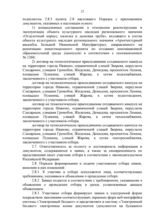 Постановление Правительства Ивановской области от 08.08.2025 N 316-п "О внесении изменений в некоторые постановления Правительства Ивановской области" (вместе с "Порядком предоставления из областного бюджета субсидий юридическим лицам на технологическое присоединение объектов, расположенных на территории особой экономической зоны промышленно-производственного типа "Иваново", к электрическим сетям, сетям газоснабжения, сетям водоснабжения и водоотведения, проектирование и строительство инженерной инфраструктуры для водоотведения площадки особой экономической зоны промышленно-производственного типа "Иваново", создание объектов иной инфраструктуры (строительство забора (со шлагбаумом), ограждающего территорию особой экономической зоны промышленно-производственного типа "Иваново"), проектирование и строительство контрольно-пропускного пункта, технологическое присоединение в части увеличения максимальной мощности ранее подключенных энергопринимающих устройств площадки ОЭЗ в рамках реализации инфраструктурных проектов, источником финансового обеспечения расходов на реализацию которых являются бюджетные кредиты из федерального бюджета бюджетам субъектов Российской Федерации на финансовое обеспечение реализации инфраструктурных проектов", "Порядком предоставления из областного бюджета субсидий некоммерческим организациям, не являющимся государственными (муниципальными) учреждениями, на технологическое присоединение создаваемого кампуса на территории города Иваново, ограниченной улицей Зверева, переулком Слесарным, улицами Громобоя, Жиделева, Демидова, проспектом Ленина, площадью Пушкина, улицей Жарова, к сетям водоснабжения, водоотведения, теплоснабжения, электроснабжения в рамках реализации инфраструктурных проектов, источником финансового обеспечения расходов на реализацию которых являются бюджетные кредиты из федерального бюджета бюджетам субъектов Российской Федерации на финансовое обеспечение реализации инфраструктурных проектов")