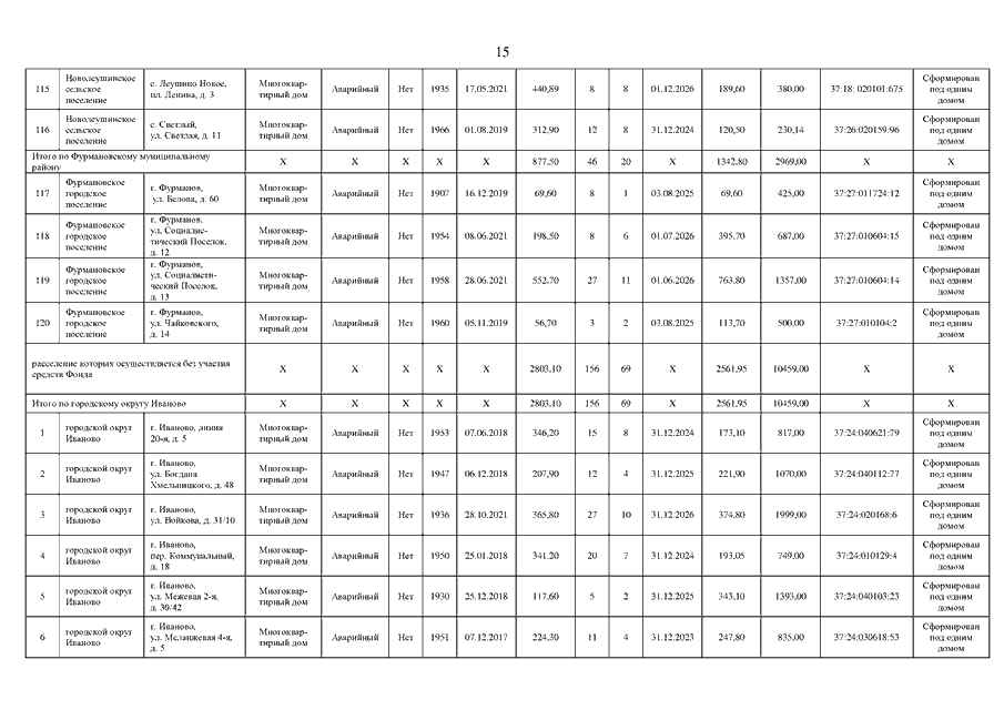 Постановление Правительства Ивановской области от 22.08.2025 N 335-п "О внесении изменений в постановление Правительства Ивановской области от 03.06.2024 N 232-п "Об утверждении региональной адресной программы "Переселение граждан из аварийного жилищного фонда на территории Ивановской области на 2024 - 2030 годы" (вместе с "Реестром жилищного фонда (многоквартирные дома, дома блокированной застройки, объекты индивидуального жилищного строительства)", "Планом реализации мероприятий по переселению граждан из аварийного жилищного фонда по способам переселения", "Планом мероприятий по переселению граждан из аварийного жилищного фонда")