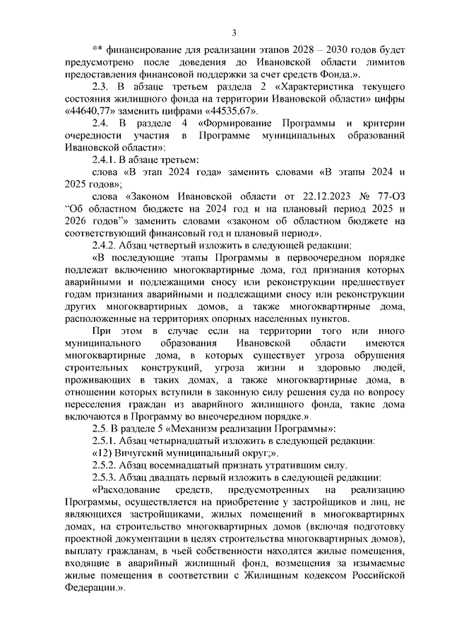 Постановление Правительства Ивановской области от 22.08.2025 N 335-п "О внесении изменений в постановление Правительства Ивановской области от 03.06.2024 N 232-п "Об утверждении региональной адресной программы "Переселение граждан из аварийного жилищного фонда на территории Ивановской области на 2024 - 2030 годы" (вместе с "Реестром жилищного фонда (многоквартирные дома, дома блокированной застройки, объекты индивидуального жилищного строительства)", "Планом реализации мероприятий по переселению граждан из аварийного жилищного фонда по способам переселения", "Планом мероприятий по переселению граждан из аварийного жилищного фонда")