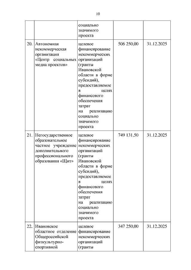 Распоряжение Правительства Ивановской области от 29.08.2025 N 108-рп "О формах, объемах и сроках оказания поддержки социально ориентированным некоммерческим организациям, зарегистрированным и действующим на территории Ивановской области, в 2025 году" (вместе с "Перечнем социально ориентированных некоммерческих организаций, зарегистрированных и действующих на территории Ивановской области, - получателей поддержки в 2025 году, формами, объемами и сроками оказания им поддержки")