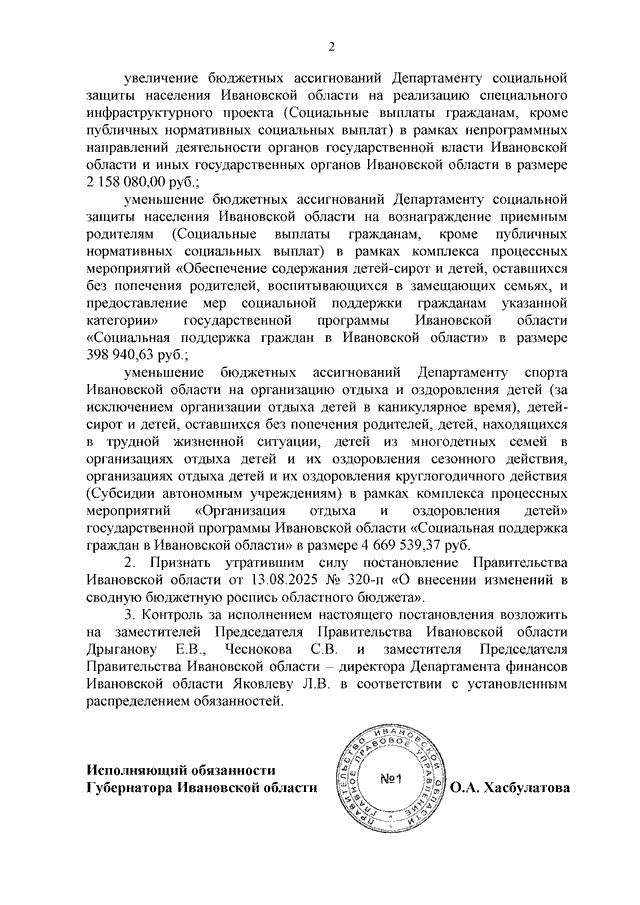 Постановление Правительства Ивановской области от 02.09.2025 N 343-п "О внесении изменений в сводную бюджетную роспись областного бюджета и признании утратившим силу постановления Правительства Ивановской области от 13.08.2025 N 320-п "О внесении изменений в сводную бюджетную роспись областного бюджета"