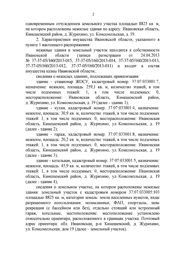 Распоряжение Правительства Ивановской области от 18.09.2025 N 111-рп "Об условиях приватизации нежилых зданий с земельным участком по адресу: Ивановская область, Кинешемский район, д. Журихино, ул. Комсомольская, д. 19, находящихся в собственности Ивановской области"