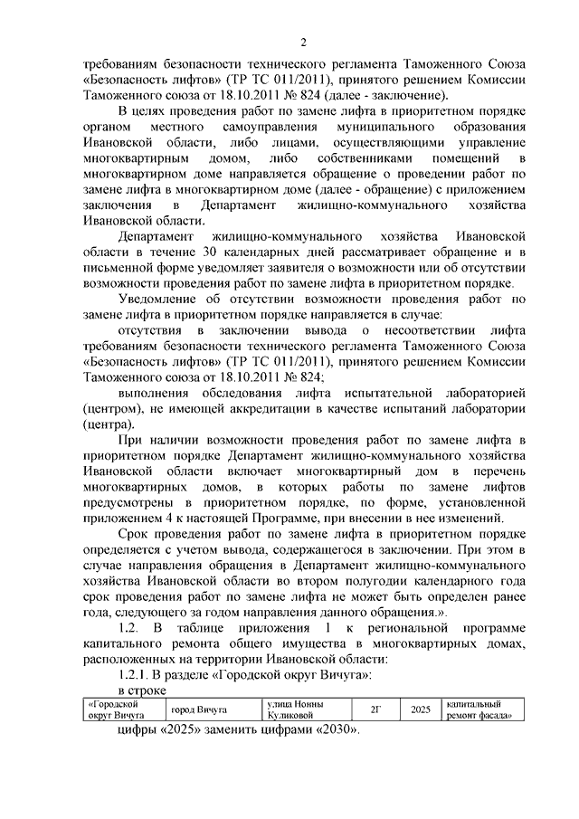 Постановление Правительства Ивановской области от 25.09.2025 N 374-п "О внесении изменений в постановление Правительства Ивановской области от 30.04.2014 N 164-п "Об утверждении региональной программы капитального ремонта общего имущества в многоквартирных домах, расположенных на территории Ивановской области" (вместе с "Перечнем многоквартирных домов, в которых ремонт, замена, модернизация лифтов, ремонт лифтовых шахт, машинных и блочных помещений в многоквартирных домах предусмотрены в приоритетном порядке")