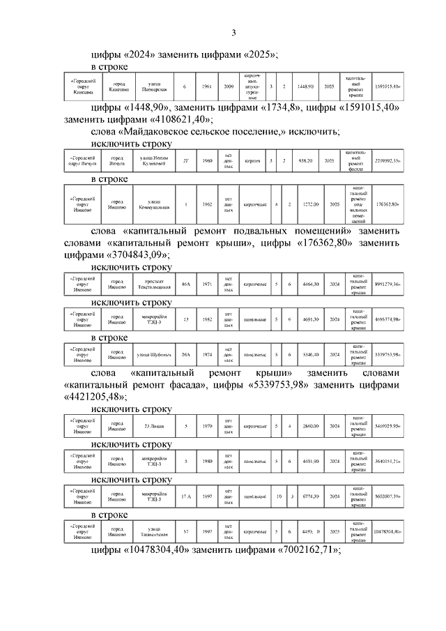 Постановление Правительства Ивановской области от 08.10.2025 N 390-п "О внесении изменений в постановление Правительства Ивановской области от 25.03.2024 N 106-п "Об утверждении краткосрочного плана реализации региональной программы капитального ремонта общего имущества в многоквартирных домах, расположенных на территории Ивановской области, на 2024 - 2026 годы"