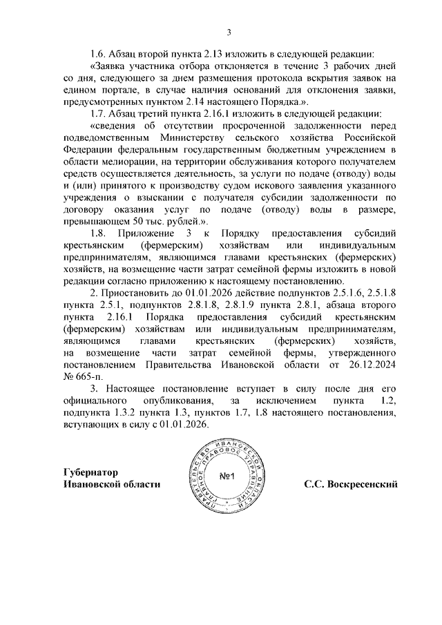 Постановление Правительства Ивановской области от 08.10.2025 N 395-п "О внесении изменений в постановление Правительства Ивановской области от 26.12.2024 N 665-п "Об утверждении Порядка предоставления субсидий крестьянским (фермерским) хозяйствам или индивидуальным предпринимателям, являющимся главами крестьянских (фермерских) хозяйств, на возмещение части затрат семейной фермы"