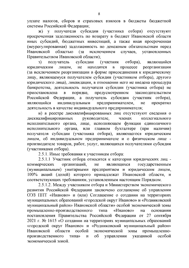 Постановление Правительства Ивановской области от 22.10.2025 N 424-п "О внесении изменений в постановление Правительства Ивановской области от 15.11.2023 N 568-п "Об утверждении Порядка предоставления субсидии из областного бюджета юридическим лицам в целях возмещения затрат на проектирование (включая затраты на проведение государственной экспертизы проектной документации и результатов инженерных изысканий, проведение государственной экспертизы определения сметной стоимости строительства, реконструкции и капитального ремонта объектов капитального строительства), капитальных затрат на создание, модернизацию и (или) реконструкцию объектов инфраструктуры особой экономической зоны промышленно-производственного типа "Иваново", разработку технических условий и технологическое присоединение объектов инфраструктуры особой экономической зоны промышленно-производственного типа "Иваново"
