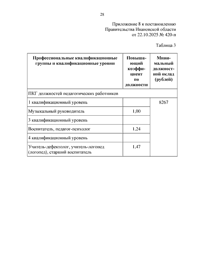 Постановление Правительства Ивановской области от 22.10.2025 N 420-п "О внесении изменений в постановление Правительства Ивановской области от 31.12.2008 N 366-п "О системе оплаты труда работников государственных учреждений системы социальной защиты населения Ивановской области" (вместе с "Перечнем профессиональных квалификационных групп должностей работников государственных учреждений системы социальной защиты населения Ивановской области", "Перечнем профессиональных квалификационных групп должностей работников государственных образовательных учреждений для детей-сирот и детей, оставшихся без попечения родителей, Ивановской области")