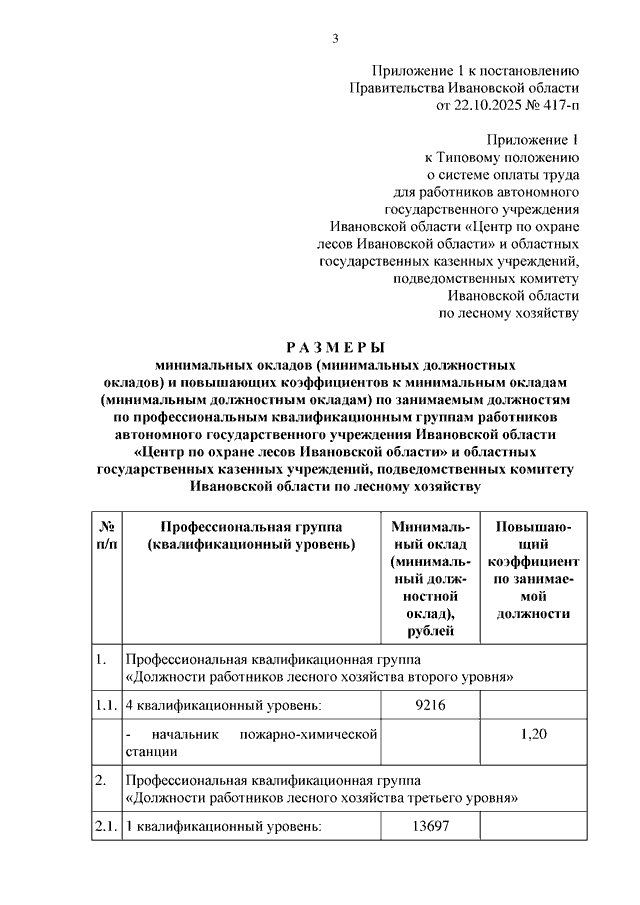 Постановление Правительства Ивановской области от 22.10.2025 N 417-п "О внесении изменений в постановление Правительства Ивановской области от 31.12.2008 N 365-п "О системе оплаты труда работников автономных государственных учреждений Ивановской области и областных государственных казенных учреждений, подведомственных комитету Ивановской области по лесному хозяйству"