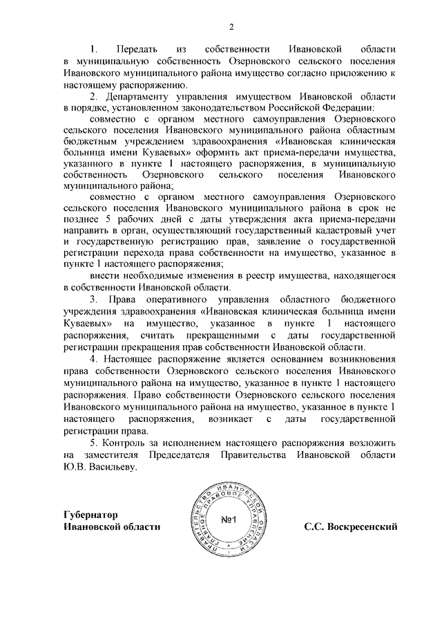 Распоряжение Правительства Ивановской области от 06.11.2025 N 129-рп "О передаче имущества из собственности Ивановской области в муниципальную собственность Озерновского сельского поселения Ивановского муниципального района"