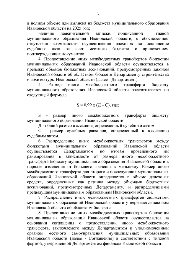 Постановление Правительства Ивановской области от 10.11.2025 N 455-п "Об утверждении Методики распределения и правил предоставления в 2025 году из областного бюджета иных межбюджетных трансфертов бюджетам муниципальных образований Ивановской области на выполнение обязательств по муниципальным контрактам на проектирование реконструкции объектов инженерной защиты в рамках исполнения судебных актов"