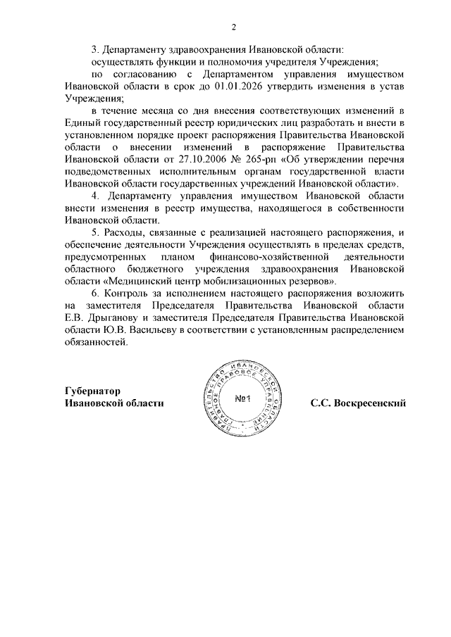 Распоряжение Правительства Ивановской области от 02.12.2025 N 138-рп "Об изменении типа существующего областного бюджетного учреждения здравоохранения Ивановской области "Медицинский центр мобилизационных резервов", подведомственного Департаменту здравоохранения Ивановской области"