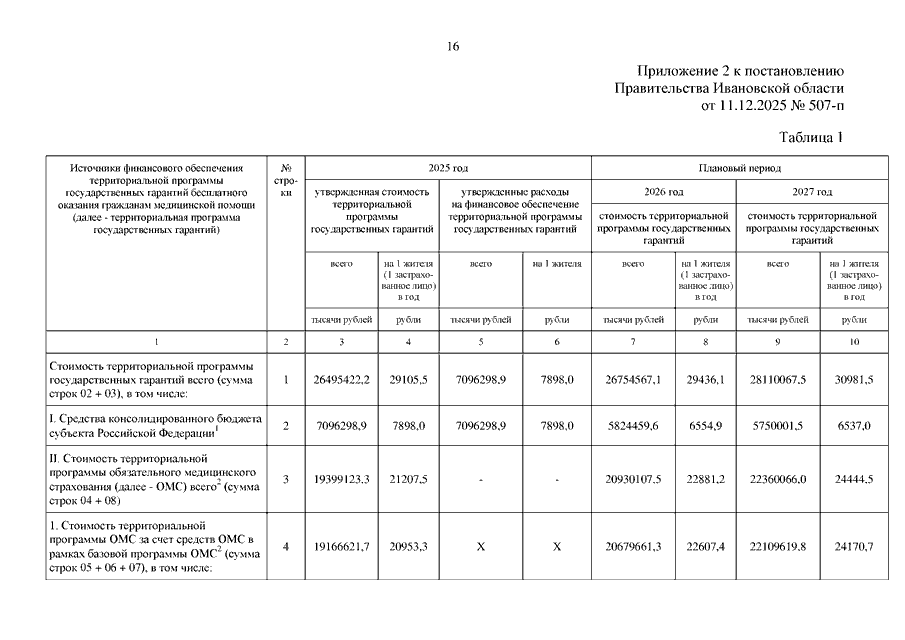 Постановление Правительства Ивановской области от 11.12.2025 N 507-п "О внесении изменений в постановление Правительства Ивановской области от 14.02.2025 N 54-п "Об утверждении Территориальной программы государственных гарантий бесплатного оказания гражданам медицинской помощи на территории Ивановской области на 2025 год и на плановый период 2026 и 2027 годов"