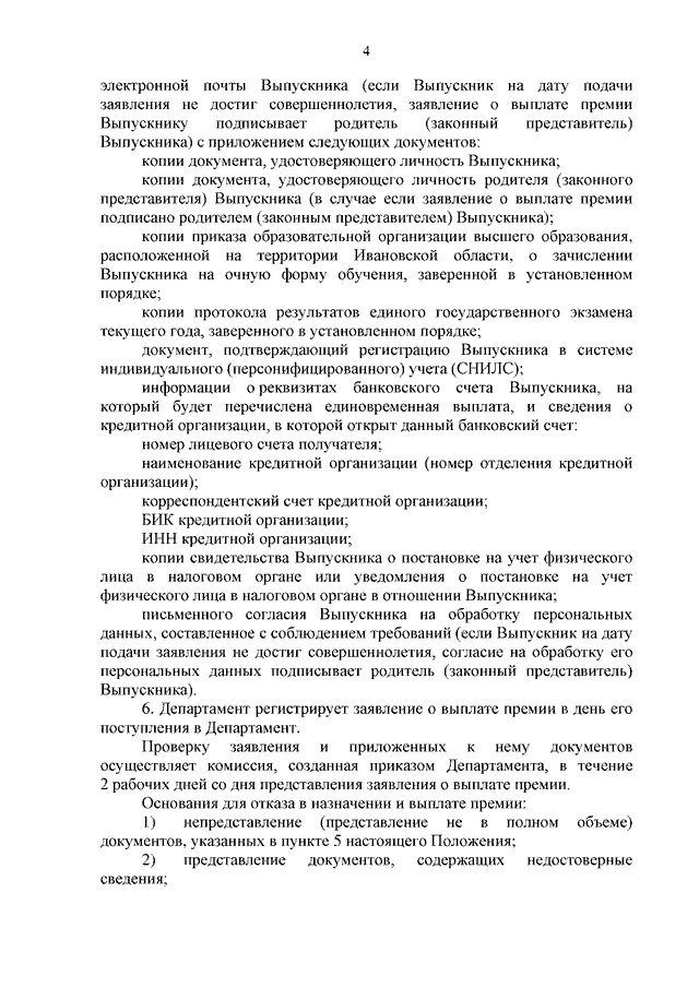 Постановление Правительства Ивановской области от 11.12.2025 N 510-п "О внесении изменений в постановление Правительства Ивановской области от 28.03.2007 N 74-п "Об учреждении премий и стипендий одаренным обучающимся образовательных организаций Ивановской области" (вместе с "Положением о премии выпускникам государственных и муниципальных общеобразовательных организаций Ивановской области, выпускникам областных государственных бюджетных профессиональных образовательных учреждений Ивановской области, набравшим по результатам единого государственного экзамена максимальный балл (100 баллов) по одному и более учебным предметам и поступившим на очную форму обучения в образовательные организации высшего образования и их филиалы на территории Ивановской области в год выпуска из образовательной организации")