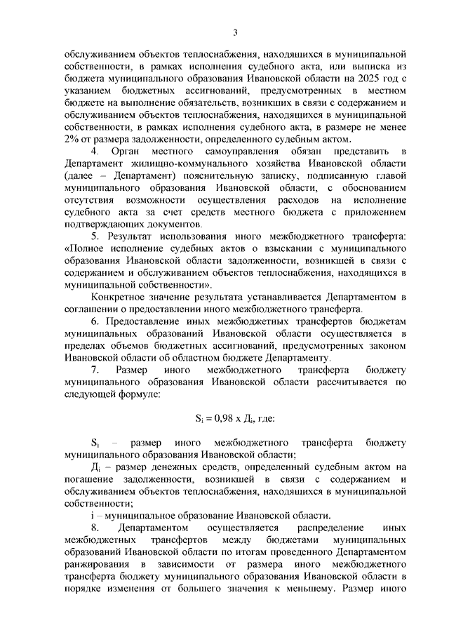 Постановление Правительства Ивановской области от 11.12.2025 N 520-п "Об утверждении Методики распределения и правил предоставления в 2025 году из областного бюджета иных межбюджетных трансфертов бюджетам муниципальных образований Ивановской области на выполнение обязательств, возникших в связи с содержанием и обслуживанием объектов теплоснабжения, находящихся в муниципальной собственности, в рамках исполнения судебных актов"