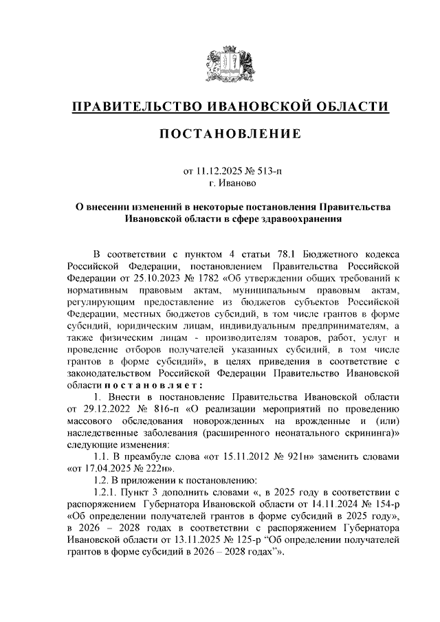 Постановление Правительства Ивановской области от 11.12.2025 N 513-п "О внесении изменений в некоторые постановления Правительства Ивановской области в сфере здравоохранения"