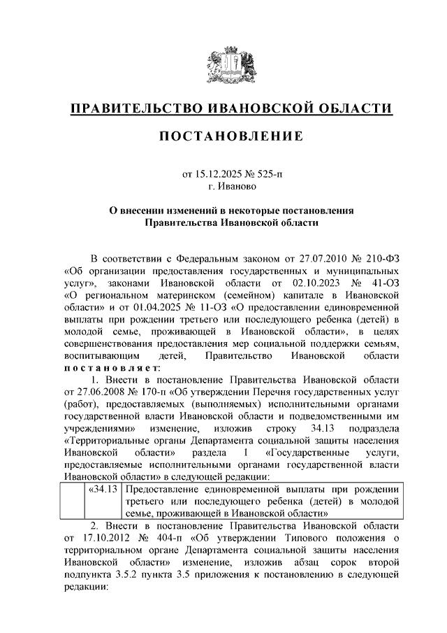 Постановление Правительства Ивановской области от 15.12.2025 N 525-п "О внесении изменений в некоторые постановления Правительства Ивановской области"