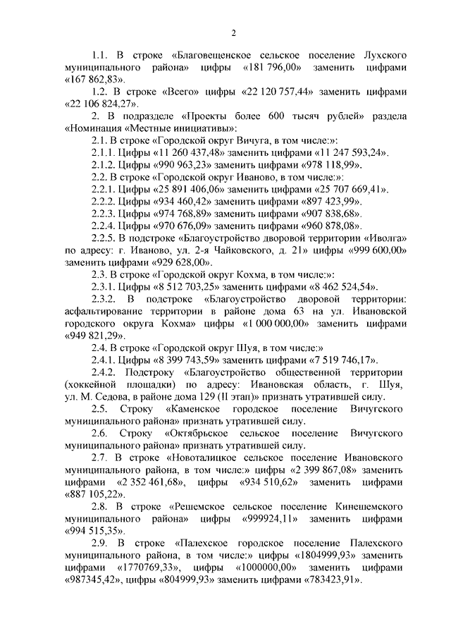 Постановление Правительства Ивановской области от 19.12.2025 N 545-п "О внесении изменений в постановление Правительства Ивановской области от 03.02.2025 N 33-п "О распределении субсидий бюджетам муниципальных образований Ивановской области на реализацию проектов развития территорий муниципальных образований Ивановской области, основанных на местных инициативах (инициативных проектов), в 2025 году"