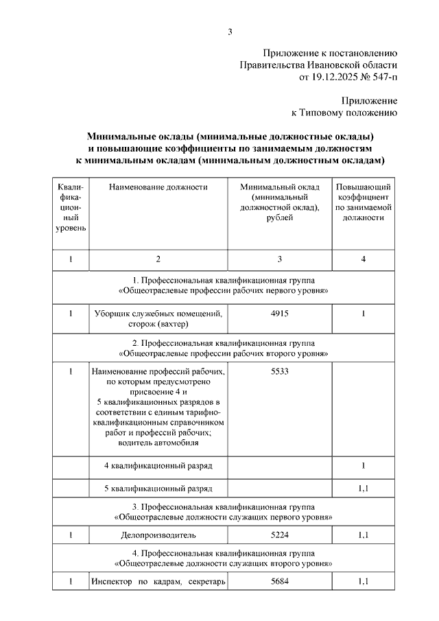 Постановление Правительства Ивановской области от 19.12.2025 N 547-п "О внесении изменений в постановление Правительства Ивановской области от 25.06.2018 N 183-п "О системах оплаты труда работников государственных учреждений Ивановской области, подведомственных Департаменту природных ресурсов и экологии Ивановской области"