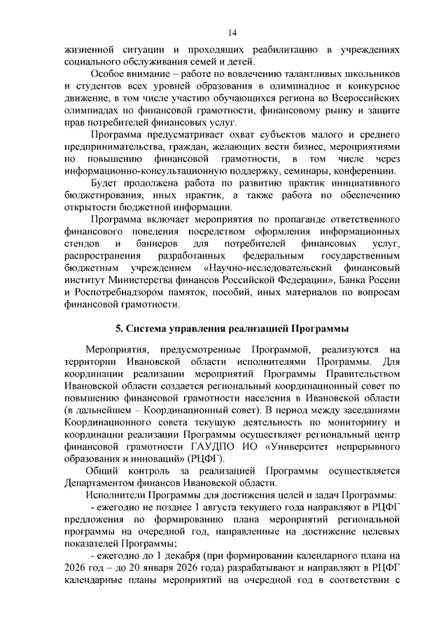 Постановление Правительства Ивановской области от 30.12.2025 N 574-п "О внесении изменения в постановление Правительства Ивановской области от 14.02.2025 N 43-п "Об утверждении региональной программы "Повышение уровня финансовой грамотности населения Ивановской области на 2025 - 2030 годы"