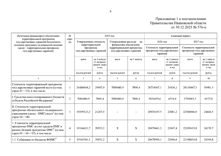 Постановление Правительства Ивановской области от 30.12.2025 N 576-п "О внесении изменений в постановление Правительства Ивановской области от 14.02.2025 N 54-п "Об утверждении Территориальной программы государственных гарантий бесплатного оказания гражданам медицинской помощи на территории Ивановской области на 2025 год и на плановый период 2026 и 2027 годов"