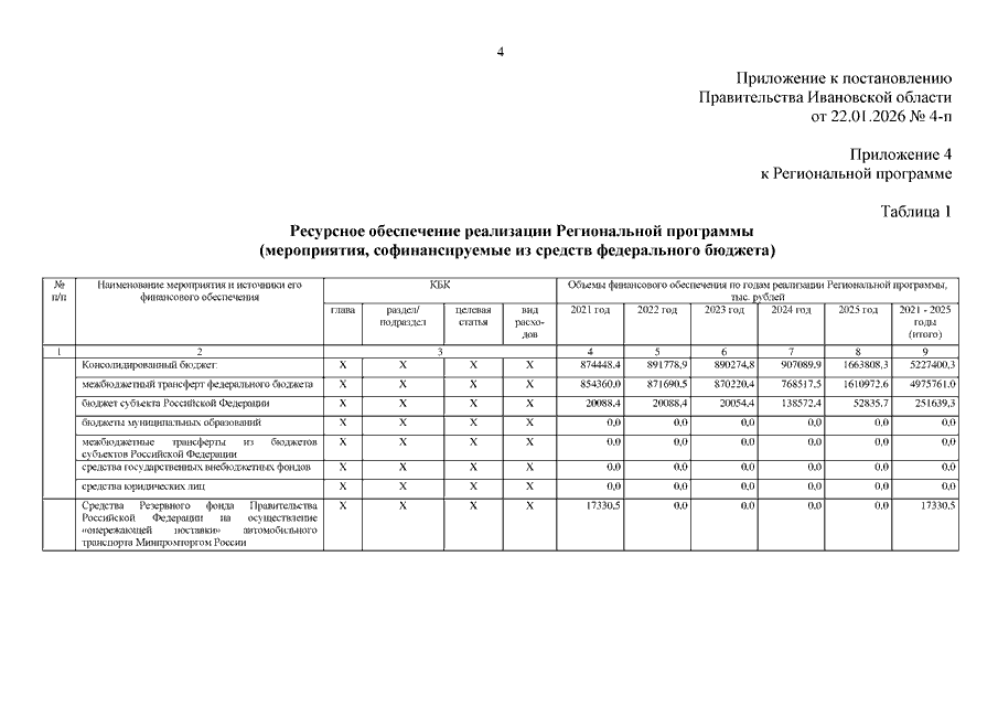 Постановление Правительства Ивановской области от 22.01.2026 N 4-п "О внесении изменений в постановление Правительства Ивановской области от 15.12.2020 N 626-п "Об утверждении Региональной программы модернизации первичного звена здравоохранения Ивановской области на 2021 - 2025 годы"