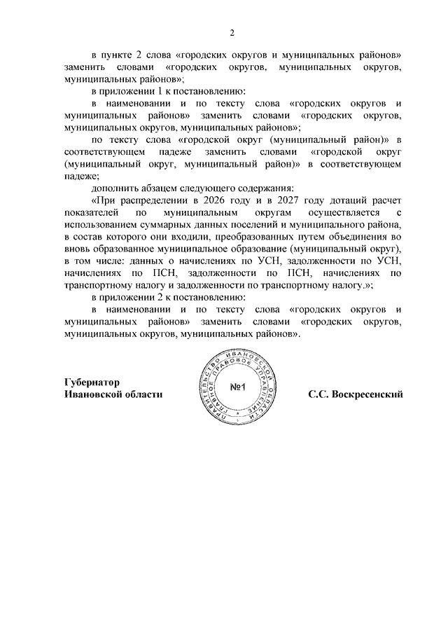 Постановление Правительства Ивановской области от 22.01.2026 N 8-п "О внесении изменений в постановление Правительства Ивановской области от 18.09.2024 N 406-п "О предоставлении из областного бюджета иных дотаций бюджетам городских округов и муниципальных районов в целях поощрения городских округов и муниципальных районов Ивановской области, обеспечивших рост доходов бюджетов бюджетной системы от налогов, уплачиваемых в связи с применением специальных налоговых режимов, и снижение задолженности по налогам в бюджеты бюджетной системы"