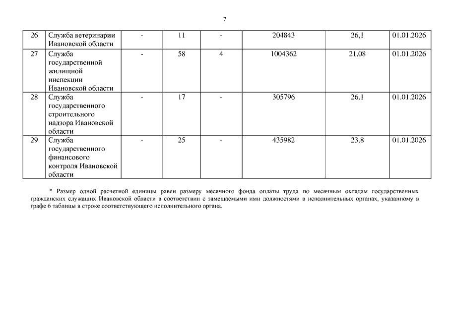 Указ Губернатора Ивановской области от 02.02.2026 N 7-уг "О внесении изменений в указ Губернатора Ивановской области от 18.12.2012 N 241-уг "О предельной численности, фонде оплаты труда и ежемесячном денежном поощрении государственных гражданских служащих Ивановской области"