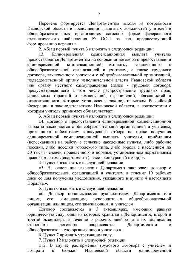 Постановление Правительства Ивановской области от 02.02.2026 N 15-п "О внесении изменений в постановление Правительства Ивановской области от 26.02.2020 N 76-п "О предоставлении единовременных компенсационных выплат учителям, прибывшим (переехавшим) на работу в сельские населенные пункты, либо рабочие поселки, либо поселки городского типа, либо города с населением до 50 тысяч человек"