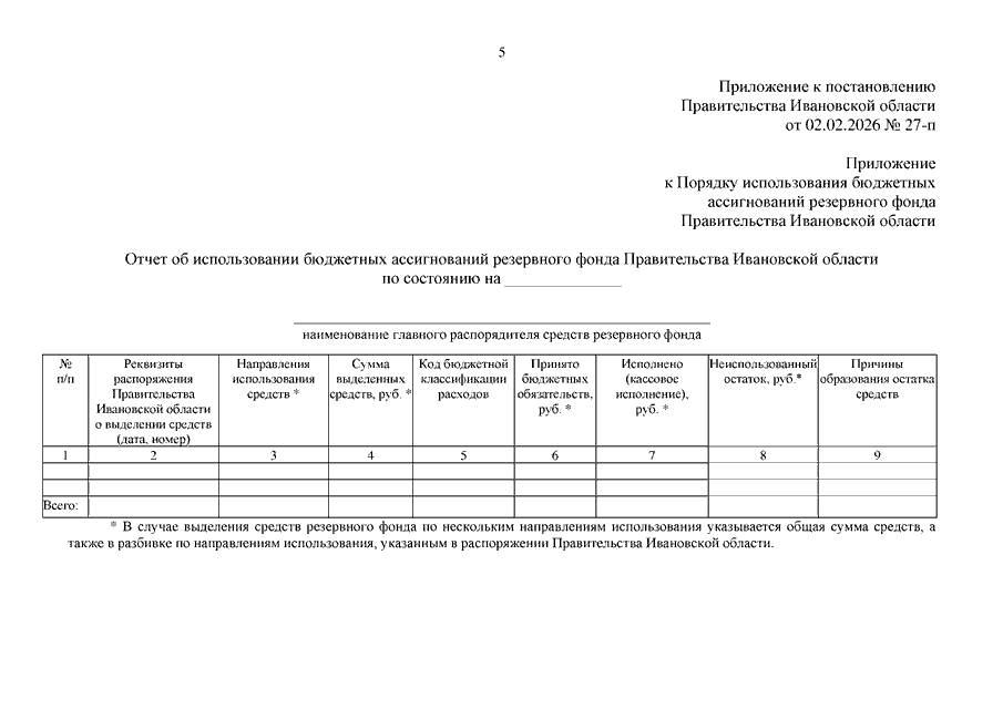 Постановление Правительства Ивановской области от 02.02.2026 N 27-п "О внесении изменений в постановление Правительства Ивановской области от 30.05.2006 N 97-п "Об утверждении Порядка расходования средств резервного фонда Правительства Ивановской области"