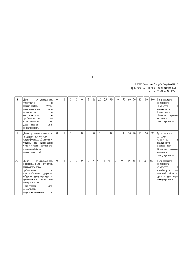 Распоряжение Правительства Ивановской области от 05.02.2026 N 12-рп "О внесении изменений в распоряжение Правительства Ивановской области от 17.12.2015 N 286-рп "Об утверждении плана мероприятий ("дорожной карты") по повышению значений показателей доступности для инвалидов объектов и предоставляемых в них услуг в Ивановской области"