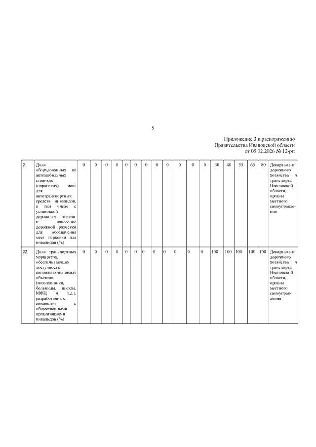 Распоряжение Правительства Ивановской области от 05.02.2026 N 12-рп "О внесении изменений в распоряжение Правительства Ивановской области от 17.12.2015 N 286-рп "Об утверждении плана мероприятий ("дорожной карты") по повышению значений показателей доступности для инвалидов объектов и предоставляемых в них услуг в Ивановской области"