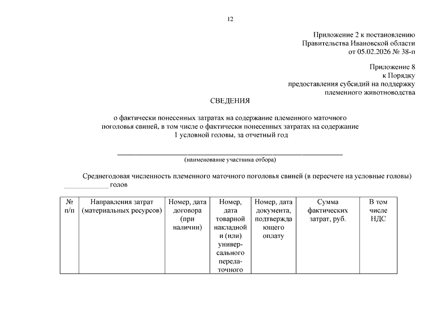 Постановление Правительства Ивановской области от 05.02.2026 N 38-п "О внесении изменений в постановления Правительства Ивановской области от 22.02.2024 N 56-п "Об утверждении Порядка предоставления субсидий на поддержку племенного животноводства" и от 22.02.2024 N 57-п "Об утверждении Порядка предоставления субсидий на поддержку производства молока"