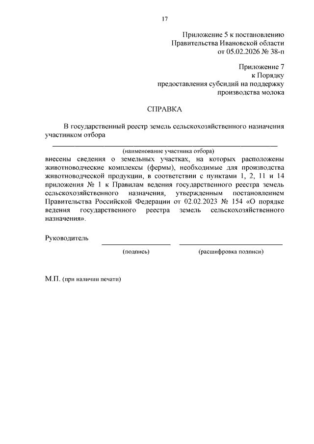 Постановление Правительства Ивановской области от 05.02.2026 N 38-п "О внесении изменений в постановления Правительства Ивановской области от 22.02.2024 N 56-п "Об утверждении Порядка предоставления субсидий на поддержку племенного животноводства" и от 22.02.2024 N 57-п "Об утверждении Порядка предоставления субсидий на поддержку производства молока"