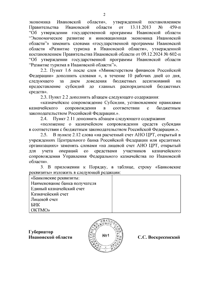 Постановление Правительства Ивановской области от 05.02.2026 N 39-п "О внесении изменений в постановление Правительства Ивановской области от 21.10.2019 N 414-п "Об утверждении Порядка предоставления субсидии автономной некоммерческой организации "Центр развития туризма и гостеприимства Ивановской области" на финансовое обеспечение организации ее текущей деятельности"