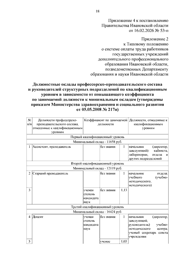Постановление Правительства Ивановской области от 16.02.2026 N 53-п "О внесении изменений в постановление Правительства Ивановской области от 31.12.2008 N 371-п "О системе оплаты труда работников государственных учреждений Ивановской области, подведомственных Департаменту образования и науки Ивановской области"