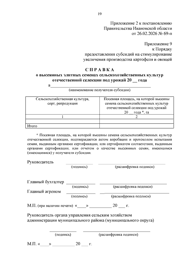 Постановление Правительства Ивановской области от 26.02.2026 N 69-п "О внесении изменений в постановление Правительства Ивановской области от 01.04.2024 N 118-п "Об утверждении Порядка предоставления субсидий на стимулирование увеличения производства картофеля и овощей"