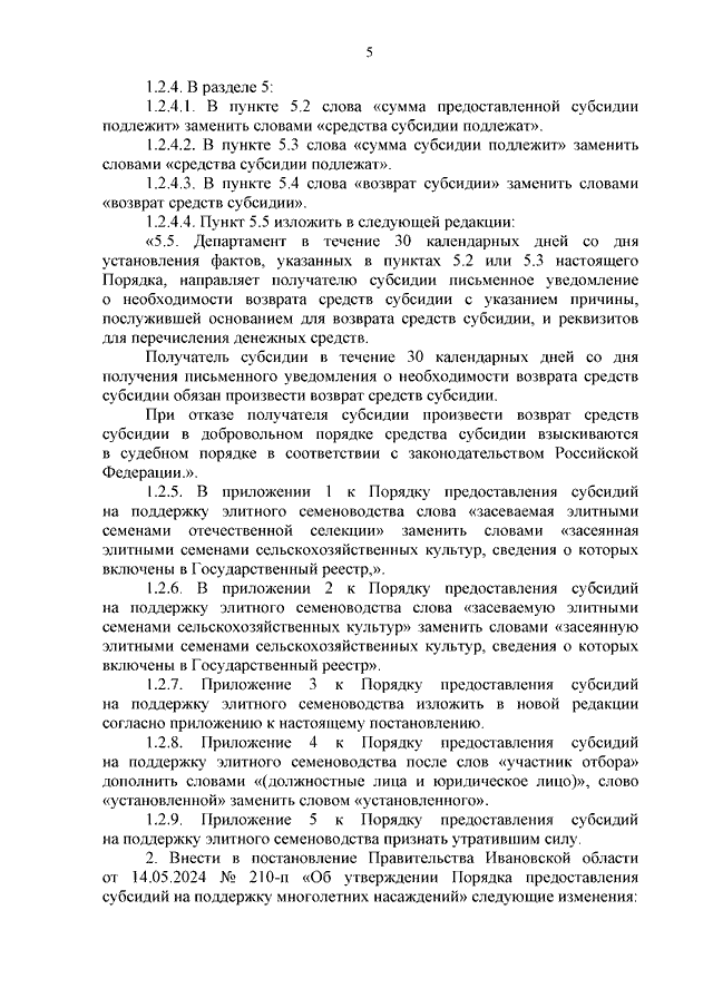 Постановление Правительства Ивановской области от 04.03.2026 N 77-п "О внесении изменений в постановления Правительства Ивановской области от 18.04.2024 N 161-п "Об утверждении Порядка предоставления субсидий на поддержку элитного семеноводства" и от 14.05.2024 N 210-п "Об утверждении Порядка предоставления субсидий на поддержку многолетних насаждений"