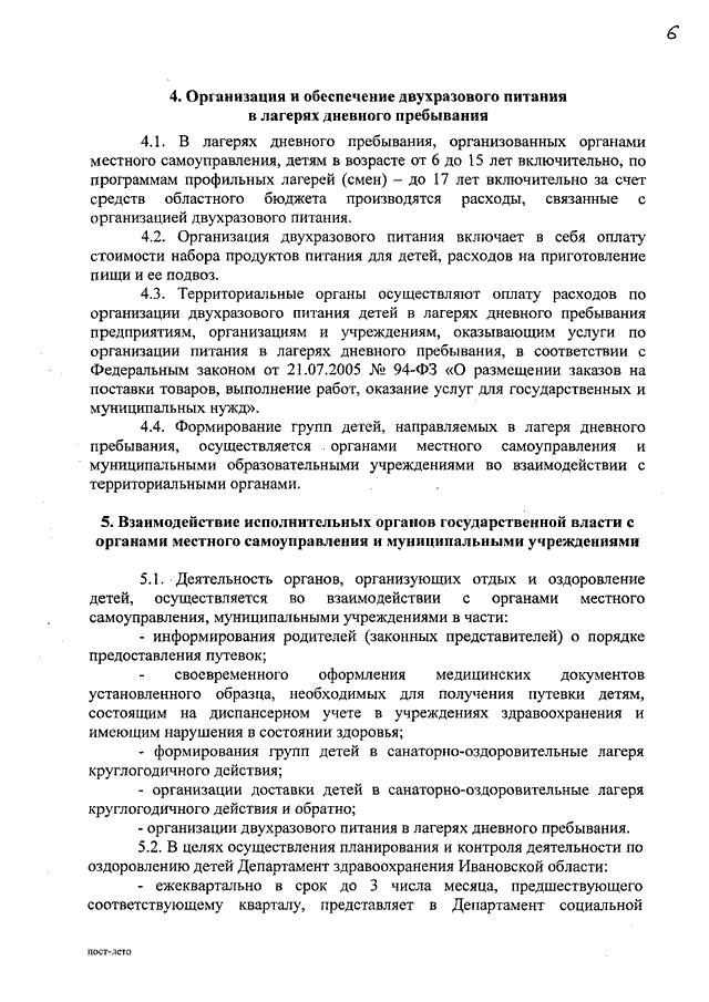 Постановление Правительства Ивановской области от 27.01.2010 N 5-п "Об обеспечении отдыха, оздоровления и занятости детей в Ивановской области в 2010 году" (вместе с "Порядком организации и обеспечения отдыха и оздоровления детей", "Положением о межведомственной комиссии по организации отдыха, оздоровления и занятости детей в Ивановской области", "Положением о межведомственной комиссии по приемке загородных оздоровительных лагерей, санаторно-оздоровительных лагерей круглогодичного действия и контролю за соблюдением данными организациями требований стандартов качества государственных услуг")