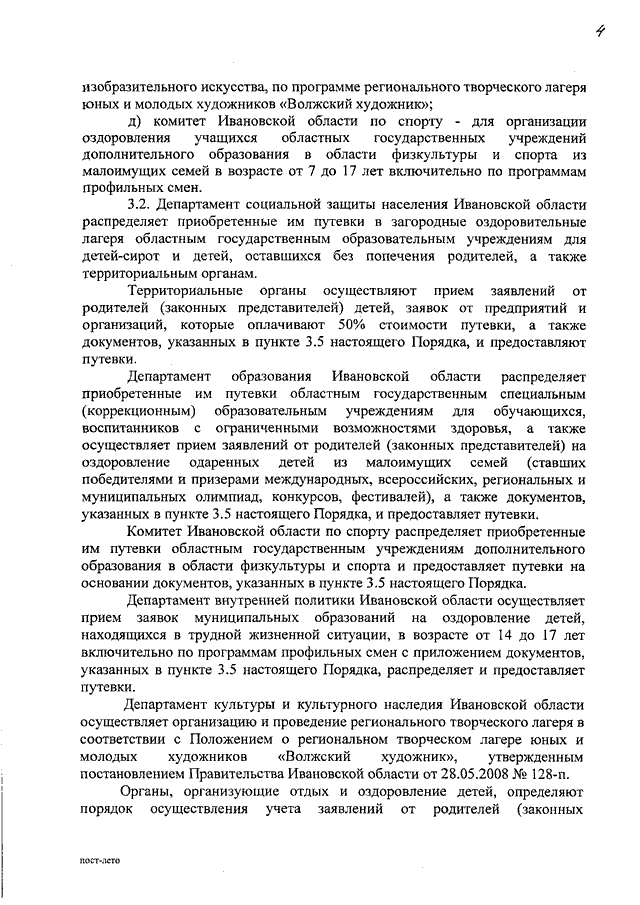 Постановление Правительства Ивановской области от 27.01.2010 N 5-п "Об обеспечении отдыха, оздоровления и занятости детей в Ивановской области в 2010 году" (вместе с "Порядком организации и обеспечения отдыха и оздоровления детей", "Положением о межведомственной комиссии по организации отдыха, оздоровления и занятости детей в Ивановской области", "Положением о межведомственной комиссии по приемке загородных оздоровительных лагерей, санаторно-оздоровительных лагерей круглогодичного действия и контролю за соблюдением данными организациями требований стандартов качества государственных услуг")