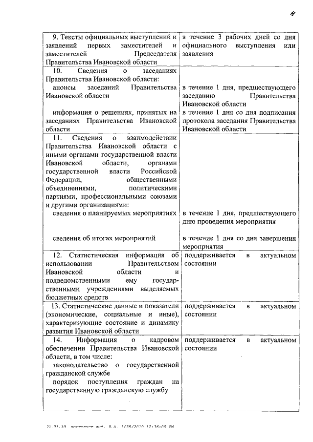 Постановление Правительства Ивановской области от 01.02.2010 N 14-п "Об обеспечении доступа к информации о деятельности Губернатора Ивановской области и Правительства Ивановской области" (вместе с "Перечнем информации о деятельности Губернатора Ивановской области", "Перечнем информации о деятельности Правительства Ивановской области")