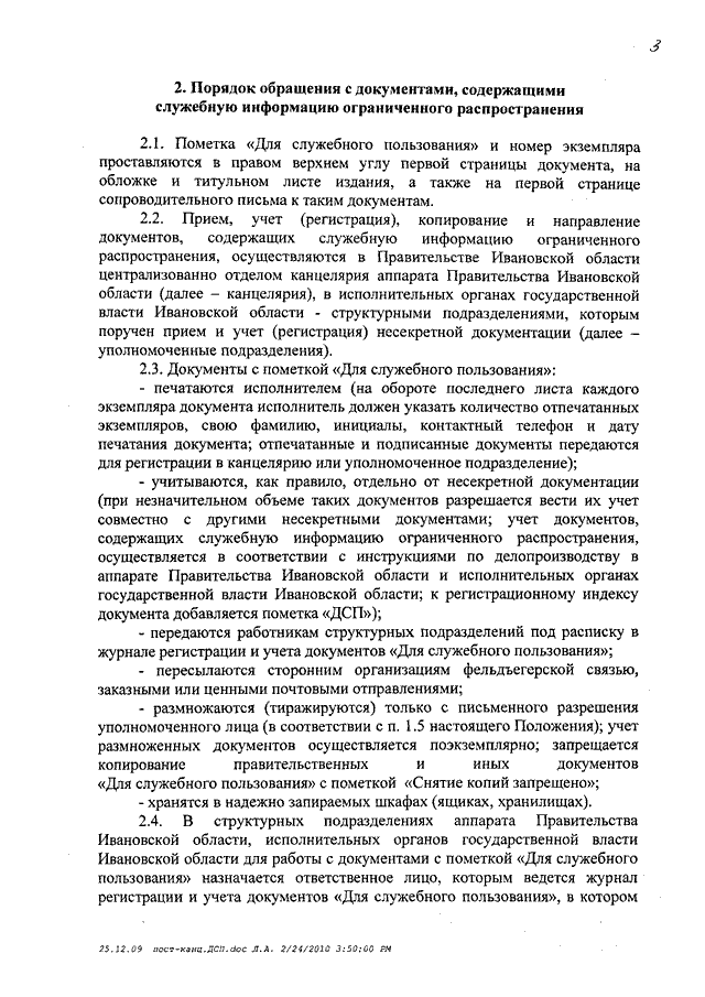 Постановление Правительства Ивановской области от 24.02.2010 N 36-п "Об утверждении Положения о порядке обращения со служебной информацией ограниченного распространения в Правительстве Ивановской области и исполнительных органах государственной власти Ивановской области"